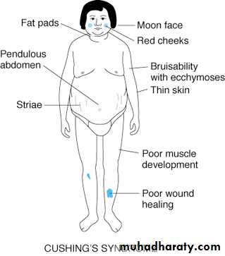 c-Iatrogenic : administration of large amounts of synthetic glucocorticoid ,as in case of asthma, skin diseases and renal disorder