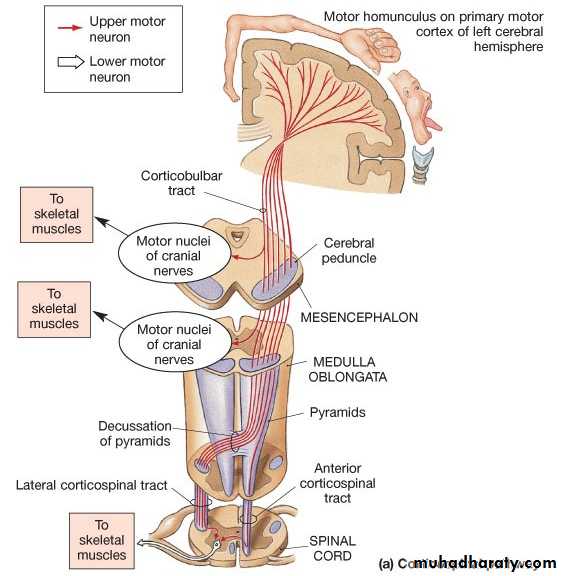 Figure 9 -1: The origin, course, and destinations of the pyramidal tracts.