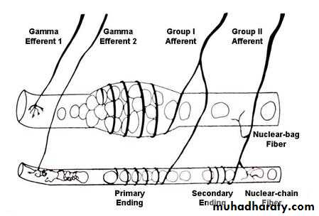 Absolute muscle length and changes in muscle length are monitored by stretch receptors embedded within the muscle.There are 2 kinds of stretch receptors:
