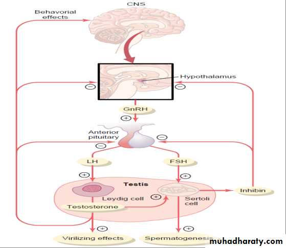 1. Testosterone, secreted by the Leydig cells located in the testis, is essential for growth and division of the testicular germinal cells, which is the first stage in forming sperm.2. Luteinizing hormone, secreted by the anteriorpituitary gland, stimulates the Leydig cells to secrete testosterone.