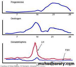 By the day 13 of the cycle, the circulating level of LH increases sharply, this LH surge is accompanied to lesser extent by an increase of FSH secretion also, this combination of gonadotropins bring about the final maturation of the of the ovarian follicles and ovulation