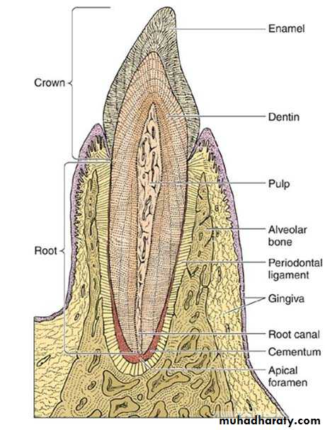 Structurally, a tooth has the following components:-