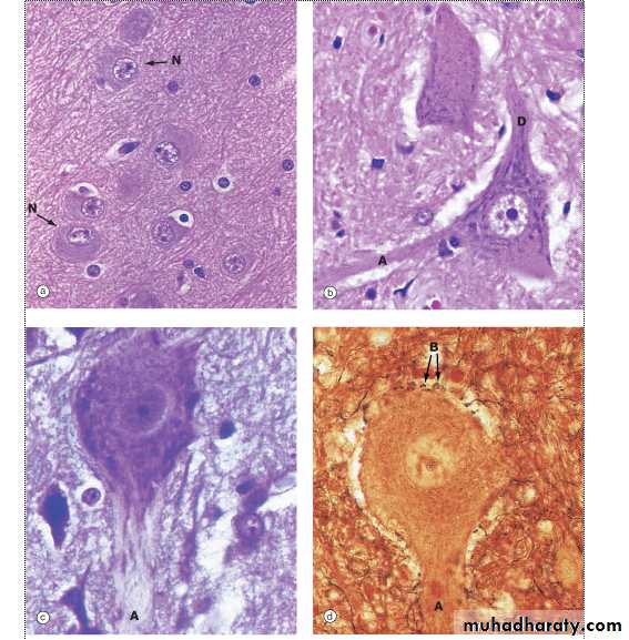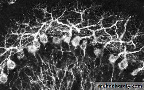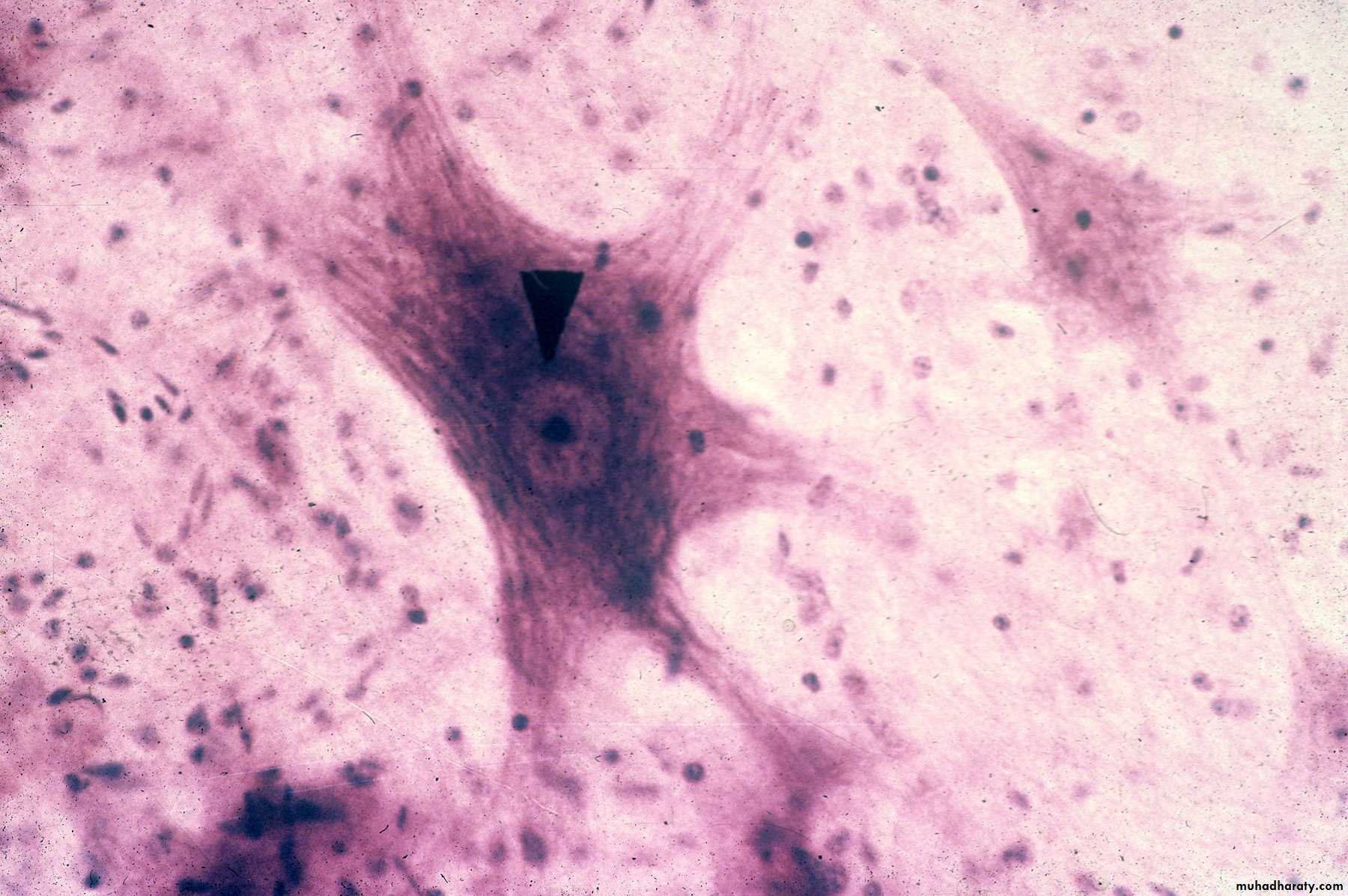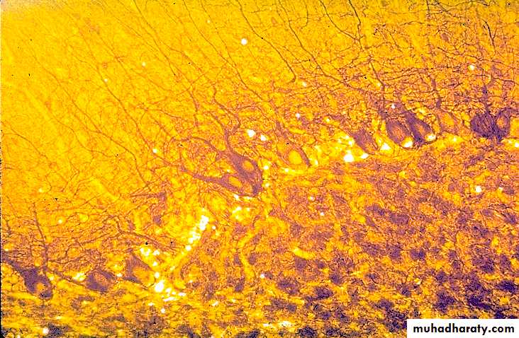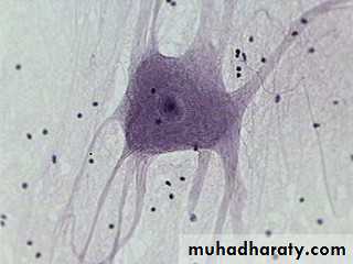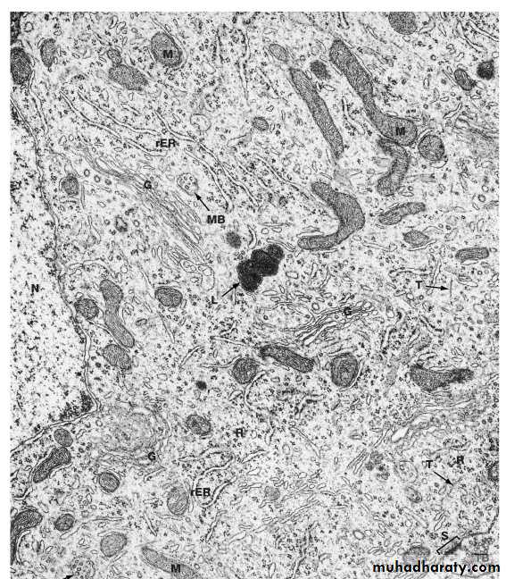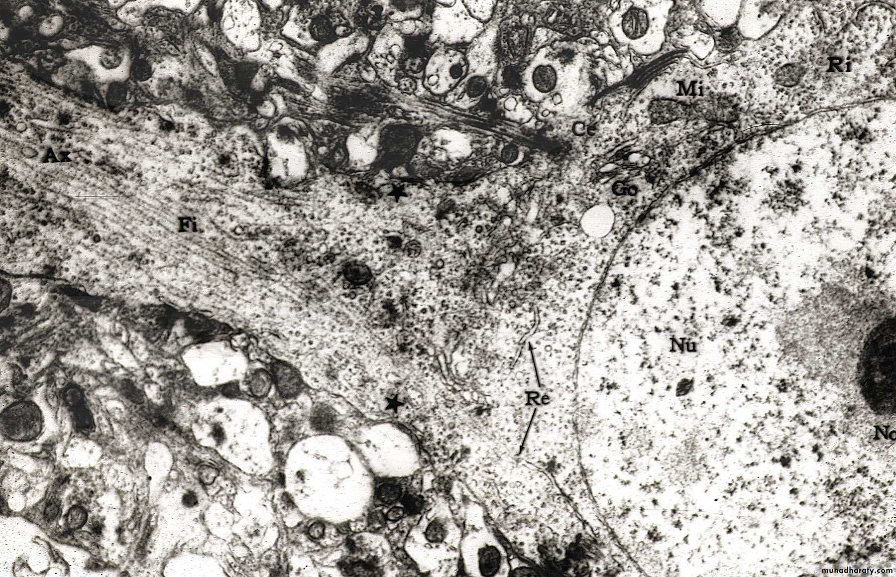 Fi = neurofilaments; Re = RER; Go = golgi; Mi = MitochondriaNerve Cell Body with dark staining Nissl