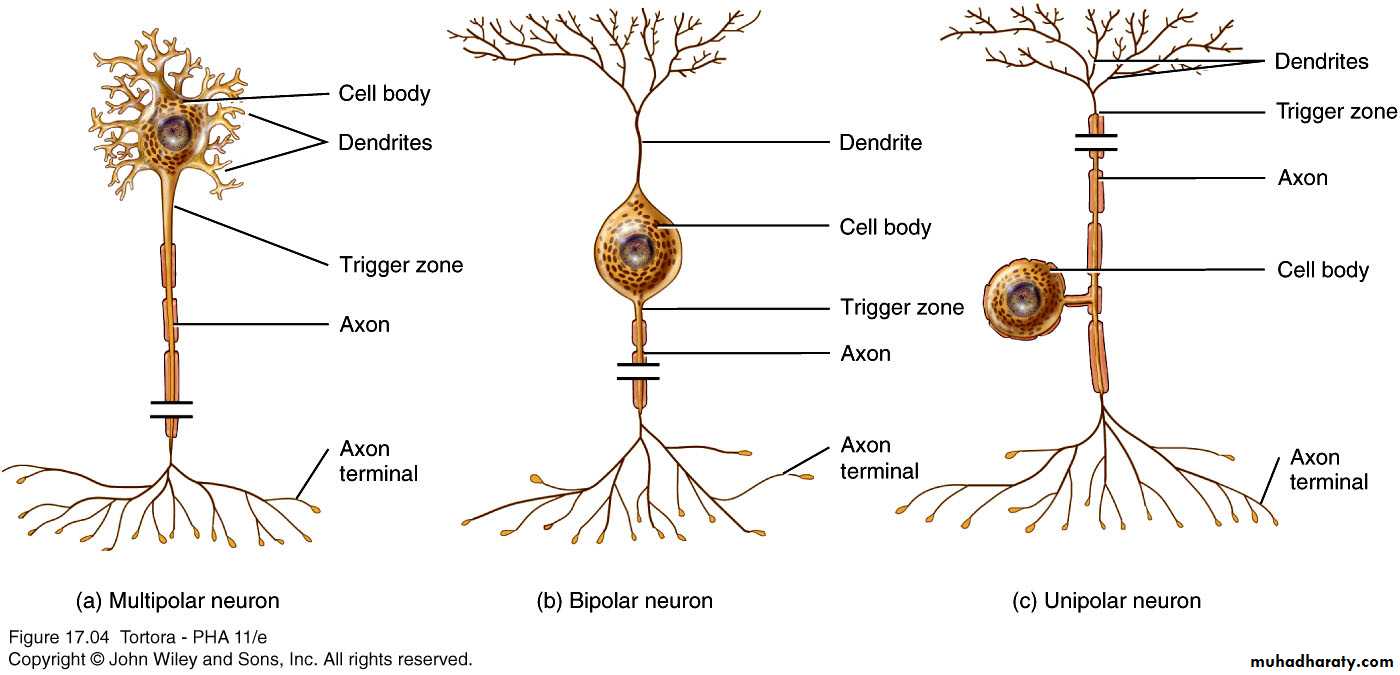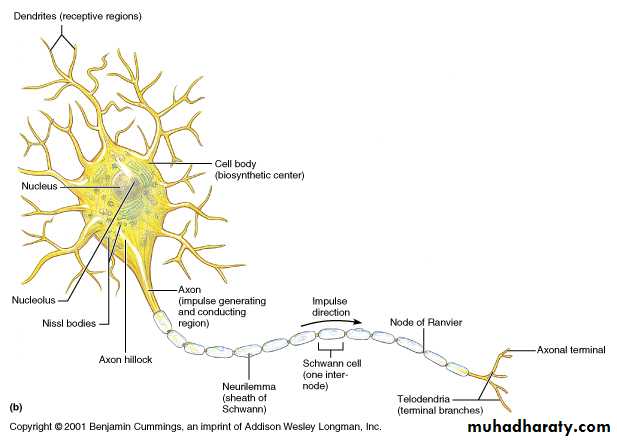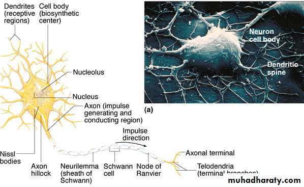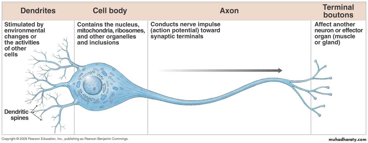Relationship of the 4 parts of a neuron (dendrites, cell body, axon, and synaptic terminals);- the functional activities of each part