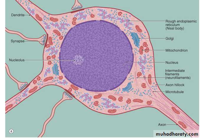 contains the usual cellular organellessynthesis & metabolism occurs primarily in the soma