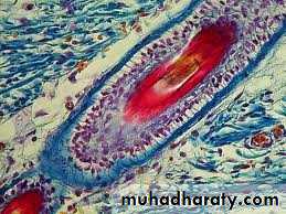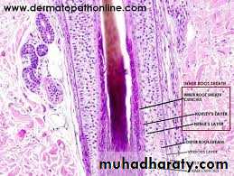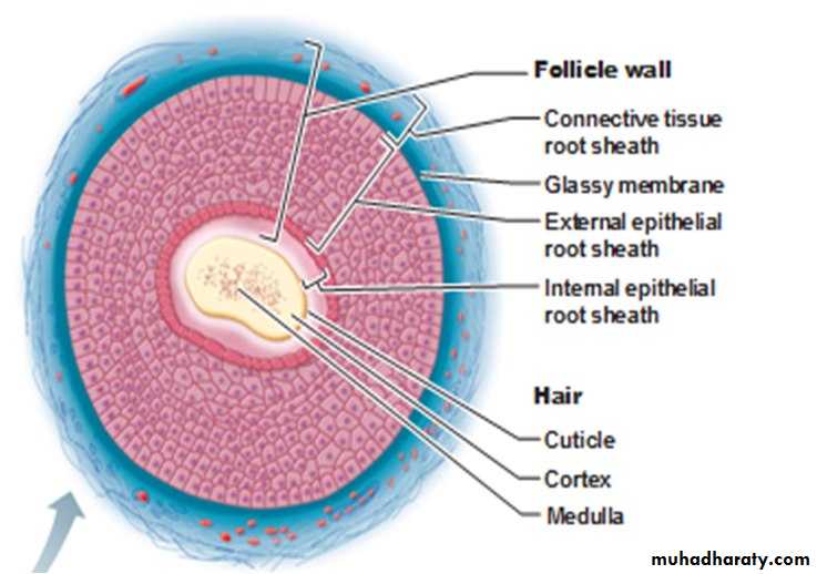 During anagen the hair follicle has a terminal dilatation called a hair bulb.
