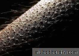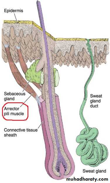 Contraction of these muscles pulls the hair shafts to a more erect position, usually when it is cold to produce tiny bumps on the skin surface ("goose bumps").