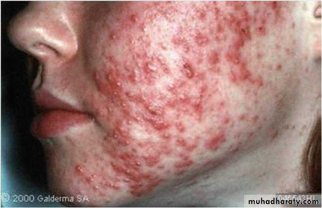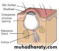 Secretion from sebaceous glands greatly increases at puberty, stimulated primarily by testosterone in men and by ovarian and adrenal androgens in women.