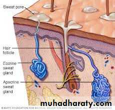 * Eccrine sweat glands are widely distributed in the skin and are most numerous and most well developed on the palm of the hand and sole of the foot.