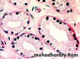 The cells of the secretory part has lightly stained cytoplasm as compared to that of ducts