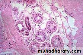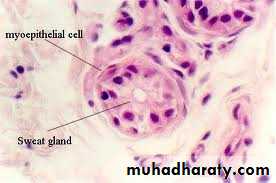 (3)Their secretory acini are larger than that of eccrine sweat glands and contain 2-3 layers of myoepithelial cells