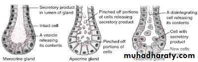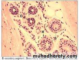 1.Clear cells (basal) – secret NaCl and water ( sweat)2.Dark cells (luminal) – secret bacricidal substances