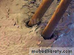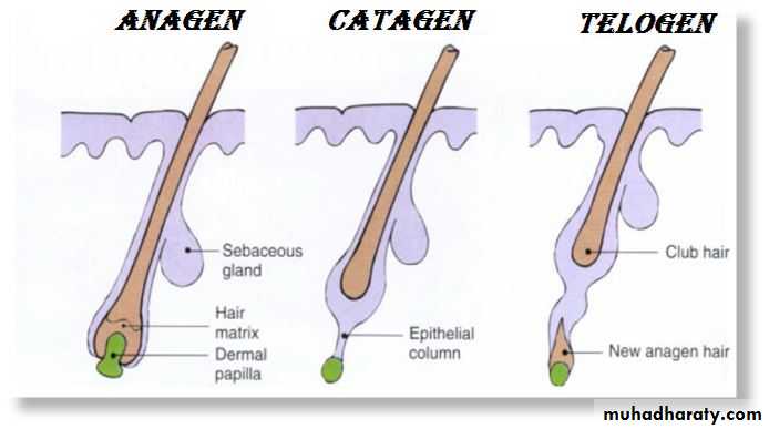 Hairs grow discontinuously, with periods of growth followed by periods of rest (peroid of growth depends on area of the body).