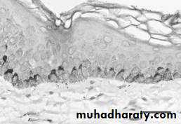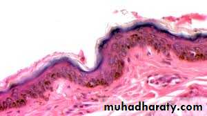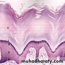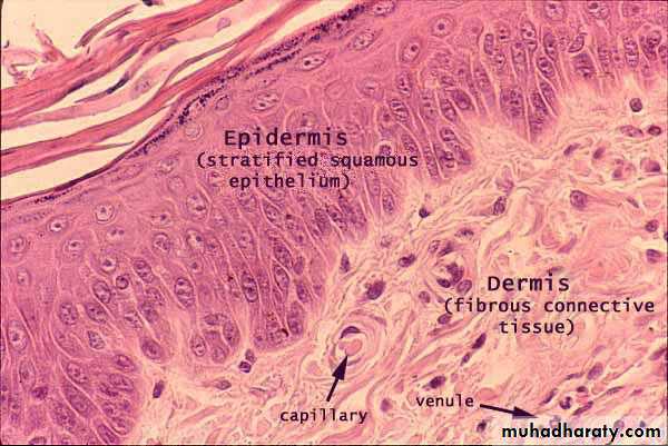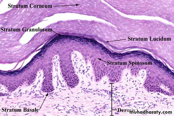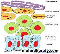 (2)Stratum basale + lower layers of stratum spinosum are called the stratum germinativum.(3)The keratin filaments form bundles called tonofibrils which terminate at desmosomes.