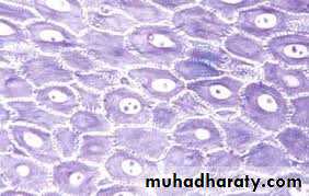 (2) it consists of a thin, translucent layer of extremely flattened eosinophilic cells.(3)The nuclei and organelles have been lost