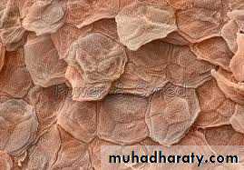 (2) flattened, nonnucleated keratinized cells whose cytoplasm is filled with filamentous keratins.
