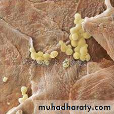 (2)Their cytoplasm is filled with intensely basophilic keratohyaline granules. These structures are not membrane-bound and consist of dense masses.(3)Other characteristic features are the membrane-coated lamellar granules, (seen by TEM)composed of various lipids. Lamellar granules undergo exocytosis, discharging their contents into the intercellular spaces of the stratum granulosum. this lipid-rich material produces sheets that envelop the cells (epidermal barrier against the loss of water from skin and barrier to penetration by most foreign materials).