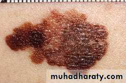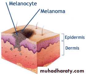 Malignant melanoma is an invasive tumor of melanocytes. Dividing rapidly, malignantly transformed melanocytes penetrate the basal lamina, enter the dermis, and invade the blood and lymphatic vessels to gain wide distribution throughout the body.