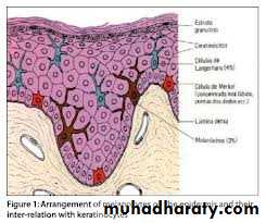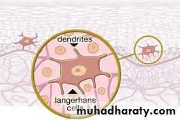 (2) Cytoplasmic processes extend from these dendritic cells between keratinocytes of all the layers, forming a fairly dense network in the epidermis .(3)They are bone marrow–derived.
