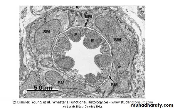 These tissues are all present in different proportions in the vascular wall, except for capillaries and postcapillary venules( the only structural elements represented are the endothelium, its basal lamina, and pericytes).