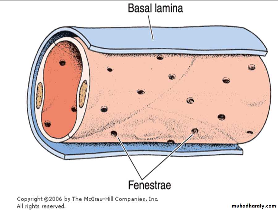 • has gaps (fenestrae) that allow the diffusion of substances to nourish cells deep in the vessel wall.