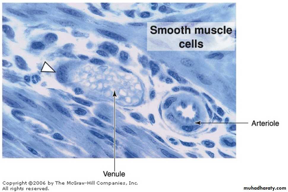 The arterioles are generally less than 0.5 mm in diameter and have relatively narrow lumens.The subendothelial layer is very thin. In the very small arterioles, the internal elastic lamina is absent, and