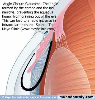 Is the condition when the drainage of the aqueous humour is impededIncrease in the intraocular pressure