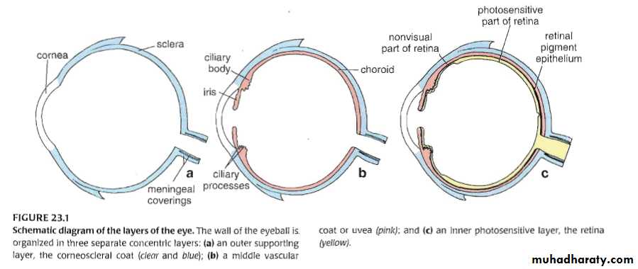 A thick layer of adipose tissue partially surrounds and cushions the eyeLayers of the eye