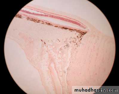 Bruch’s membrane, a thin amorphous hyaline sheet lies between choroid and retina