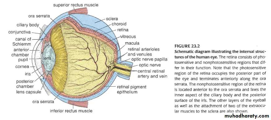 The neural retina contains neurons and photoreceptors extends anteriorly as far as the ora serrataRetinal detachement