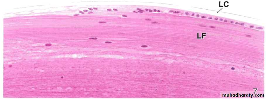 A photomicrograph of the lens near its equator, LC. Lens capsule,LF. Lens fibers
