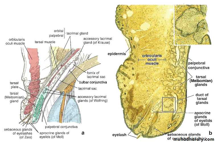 a. Schematic drawing of the eyelid, and b. photomicrograph of the eyelid