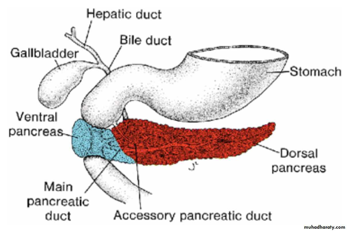 The main pancreatic duct (of Wirsung) is formed by the distal part of the dorsal pancreatic duct and the entire ventral pancreatic duct