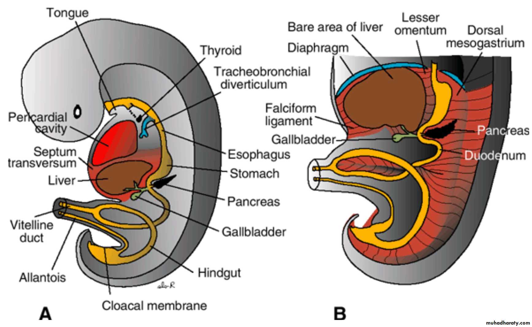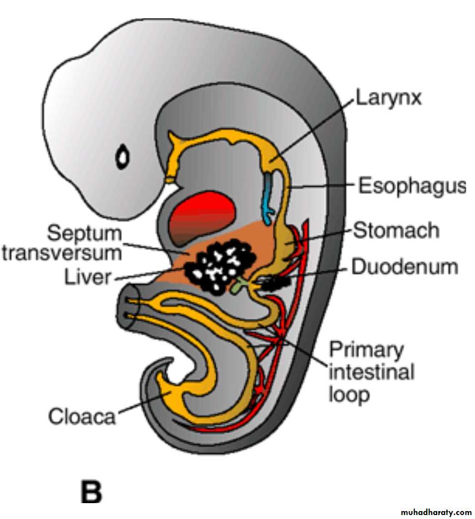 The hepatic diverticulum consists of rapidly proliferating cells that penetrate the Septum transversum( the mesodermal plate between the pericardial cavity and the stalk of the yolk sac) .