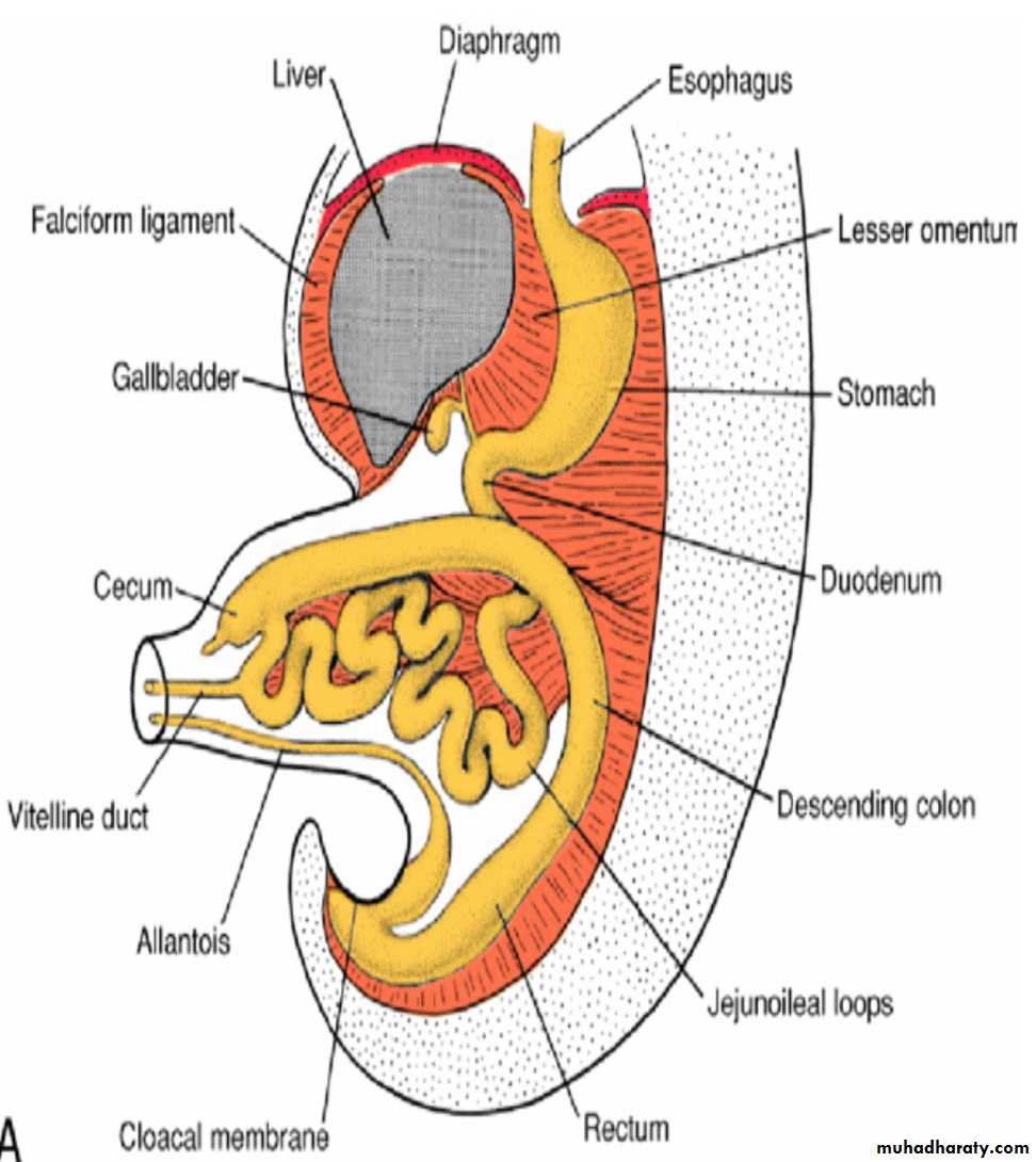 The proximal portion of the jejunum, the first part to reenter the abdominal cavity, comes to lie on the left side (The later returning loops gradually settle more and more to the right.