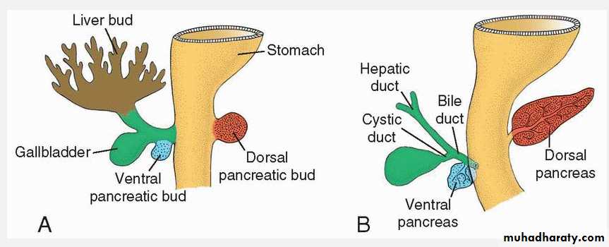 A small ventral outgrowth is formed by the bile duct, and this outgrowth gives rise to the gallbladder and the cystic duct