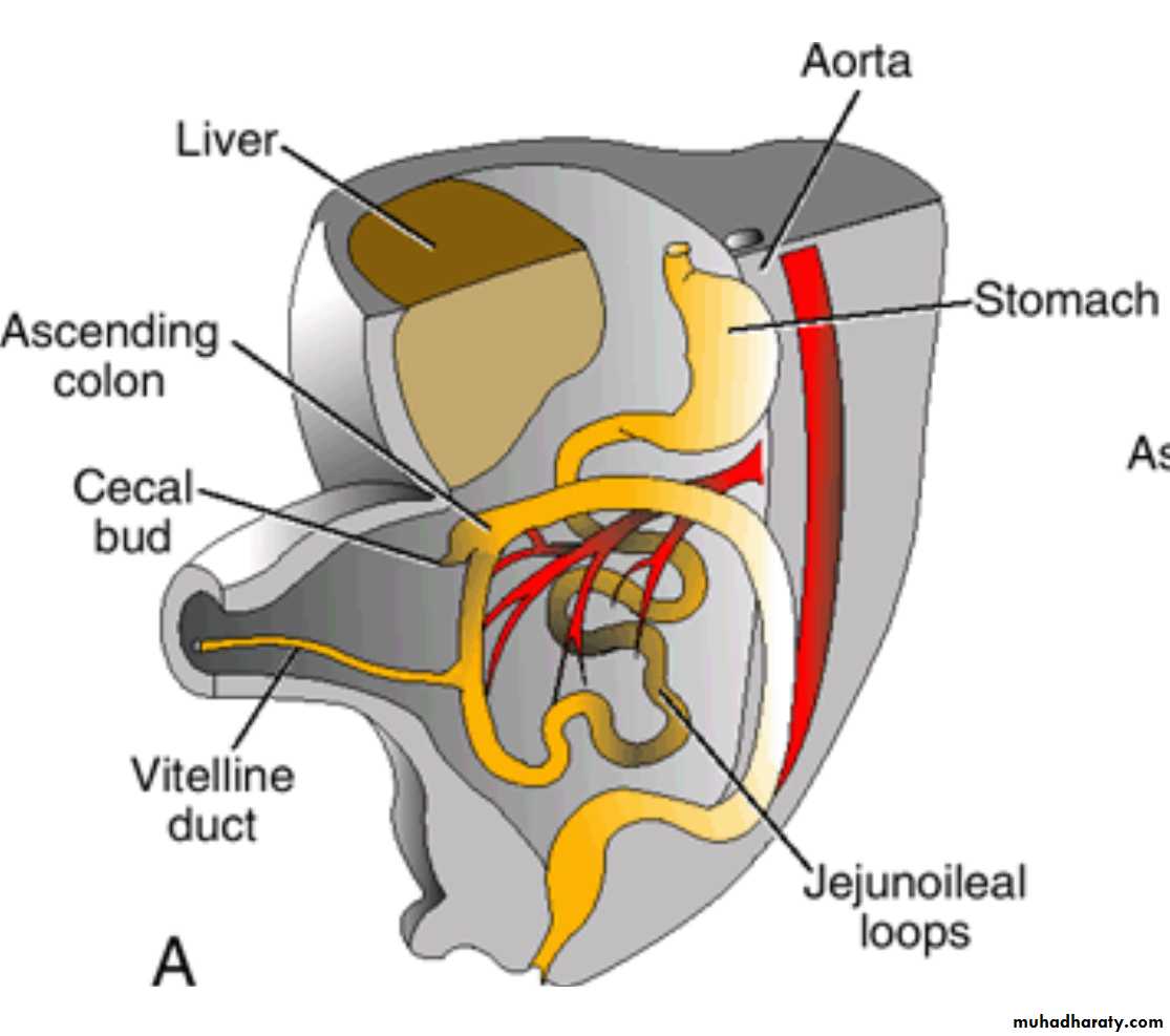 Even during rotation, elongation of the small intestinal loop continues, and the jejunum and ileum form a number of coiled loops