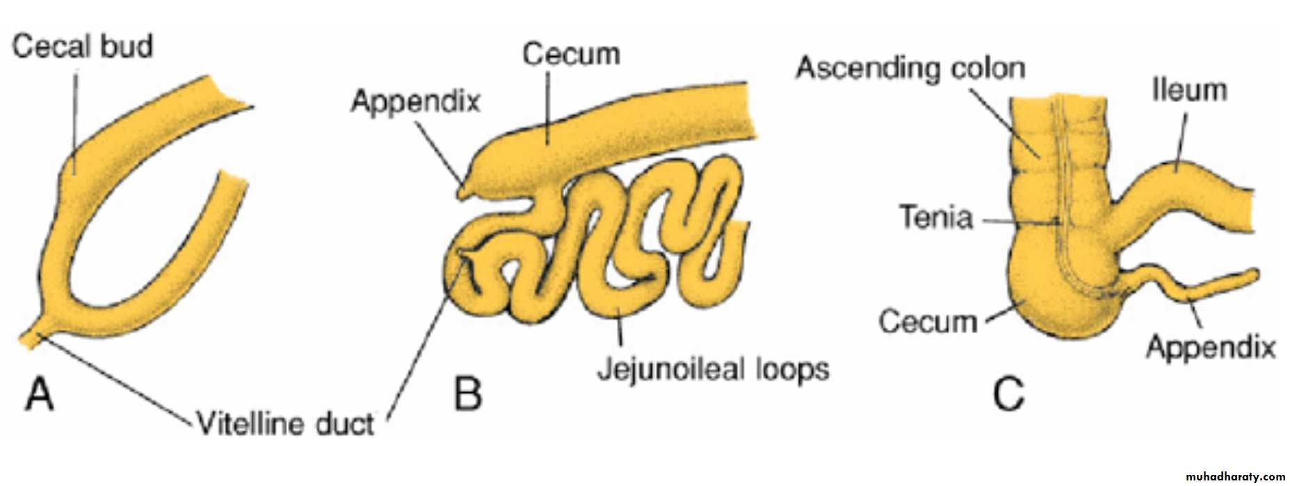 During this process the distal end of the cecal bud forms a narrow diverticulum, the appendix.
