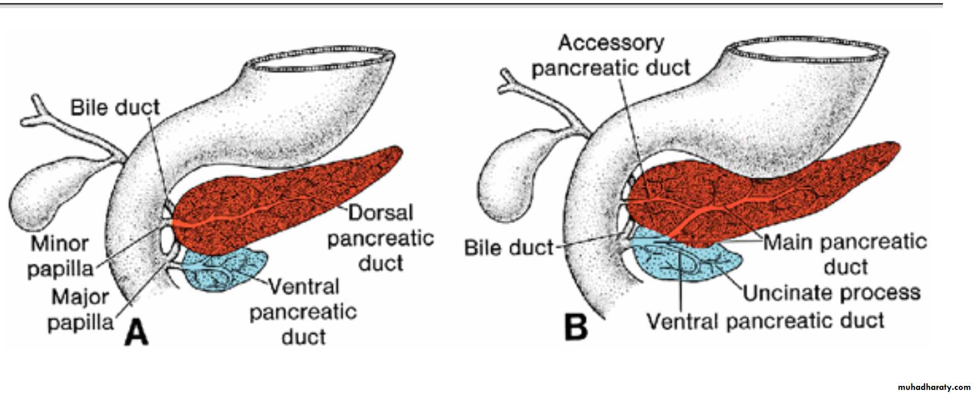The proximal part of the dorsal pancreatic duct either is obliterated or persists as a small channel, the accessory pancreatic duct (of Santorini).