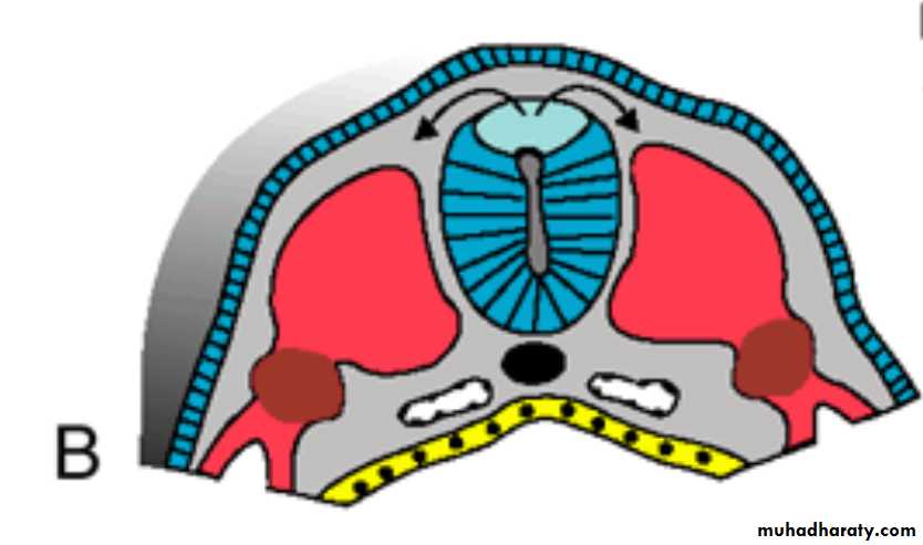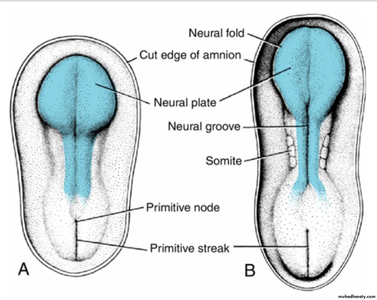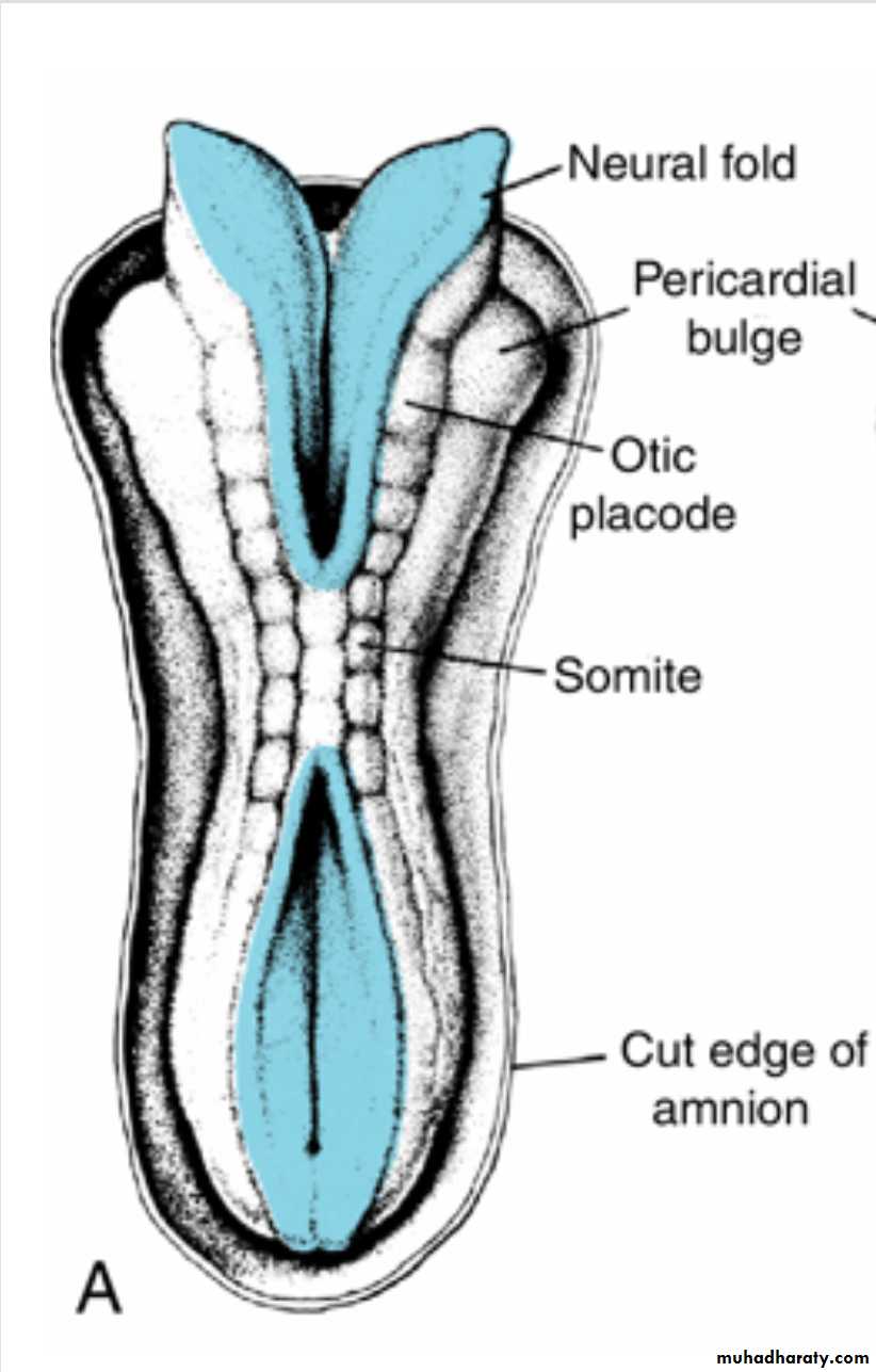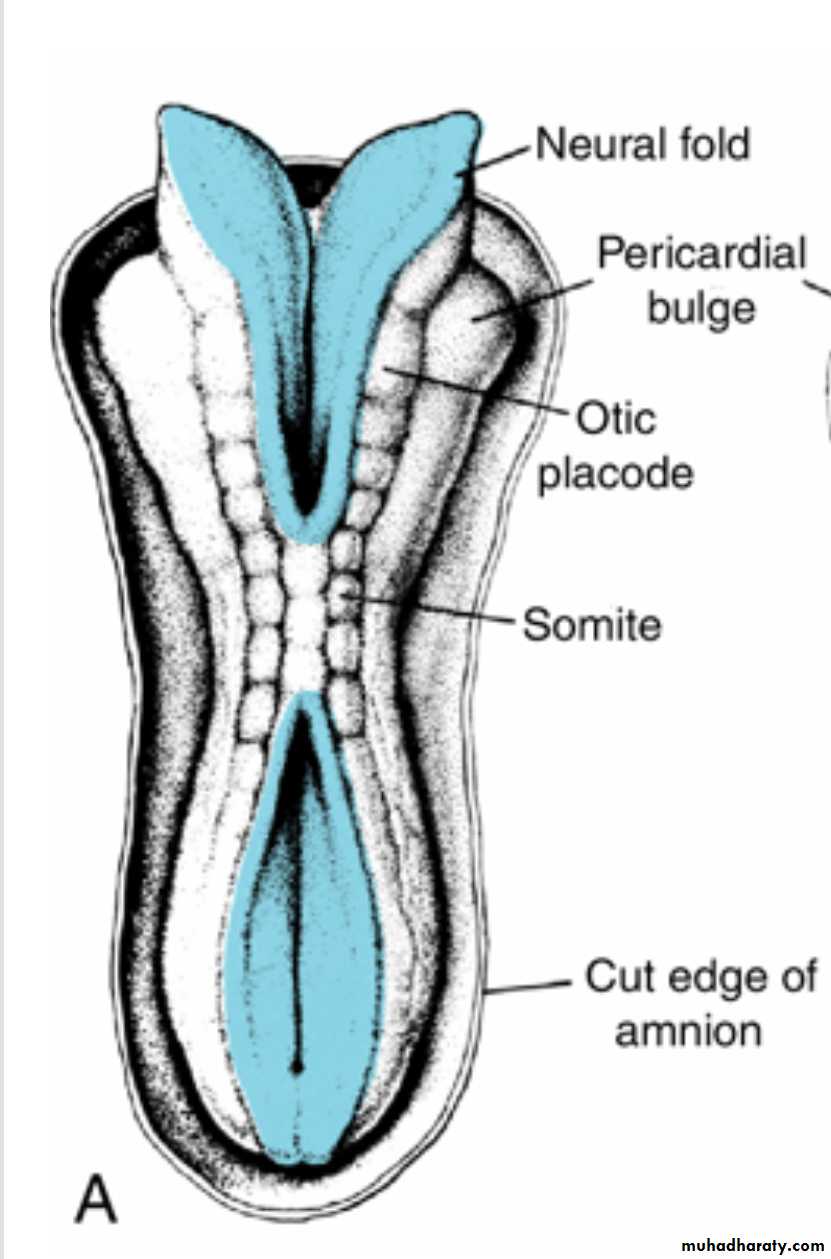 The lateral edges of the neural plate soon elevate to form the neural folds.With further development, the neural folds continue to elevate, approach each other in the midline, and finally fuse, forming the neural tube.