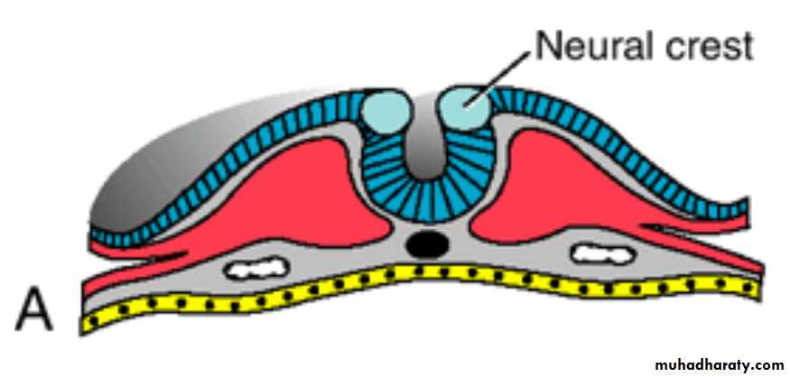 During elevation of the neural plate, a group of cells appears along each edge (the crest) of the neural folds.