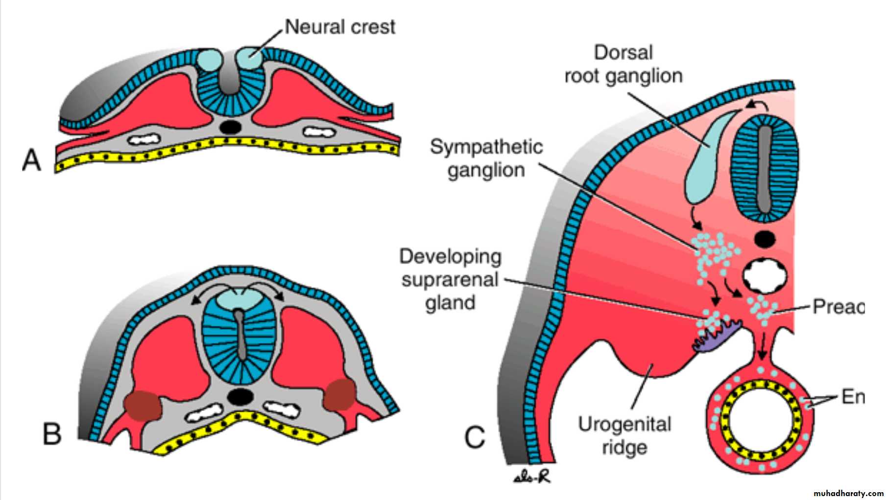 (1) sensory ganglia (dorsal root ganglia) of the spinal nerves and other cell types.neuroblasts of this ganglia derived from neural crest cells and give rise to the dorsal root neurons.