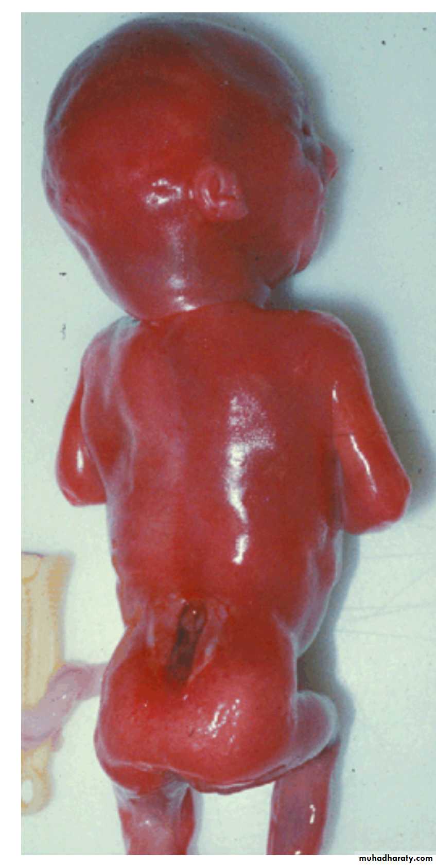 can be diagnosed prenatally by ultrasound and by determination of α-fetoprotein levels in maternal serum and amniotic fluid.The vertebra can be visualized by 12 weeks of gestation, and defects in closure of the vertebral arches can be detected.