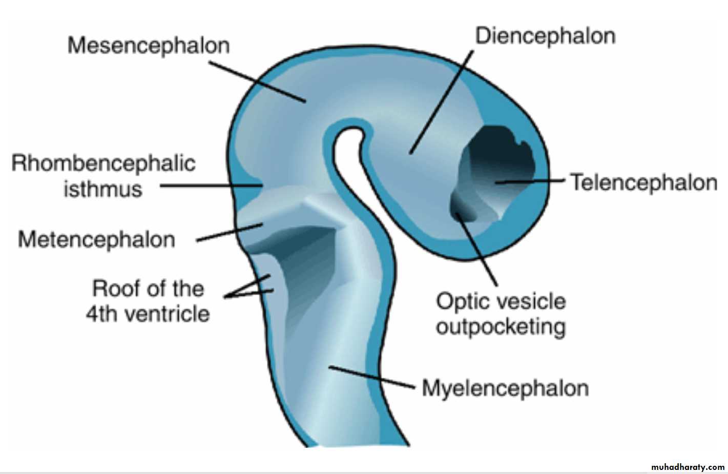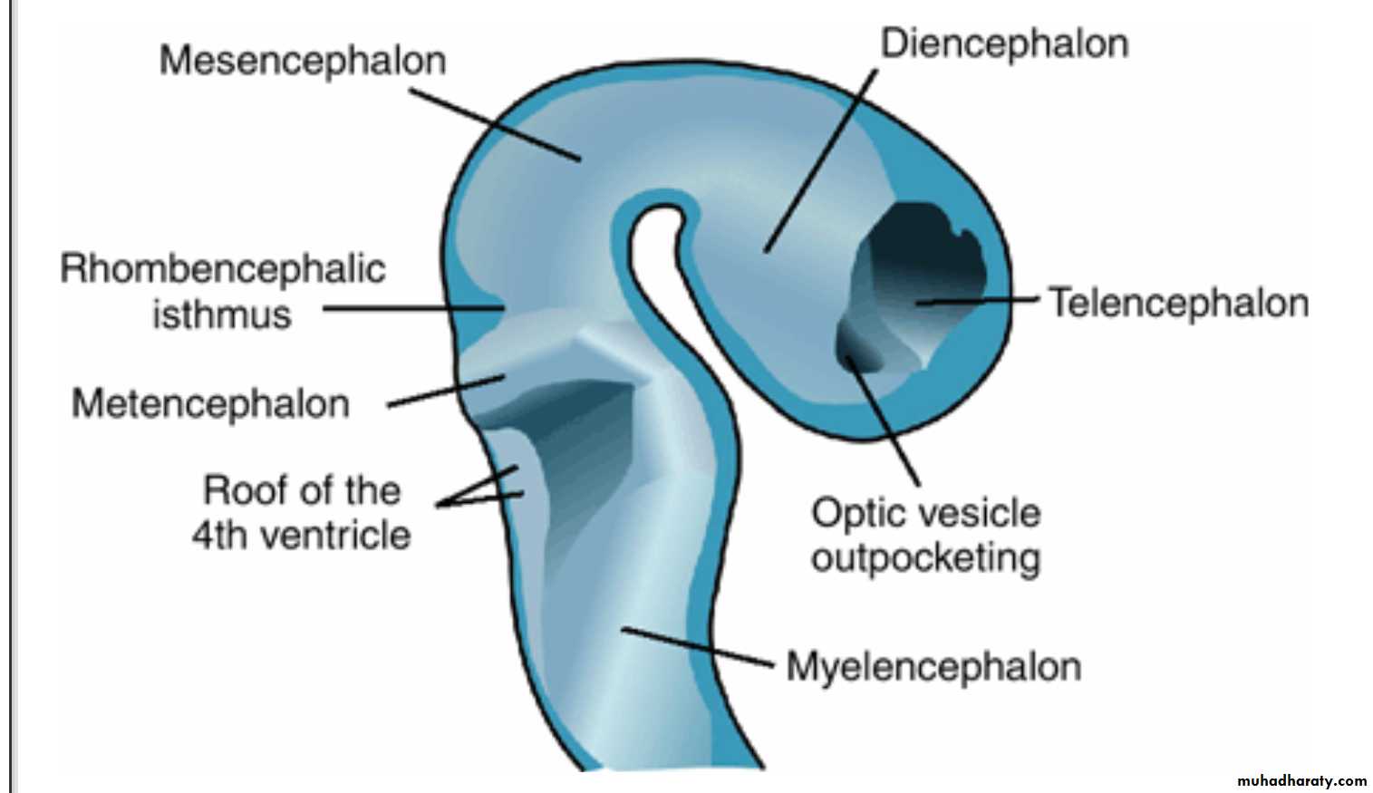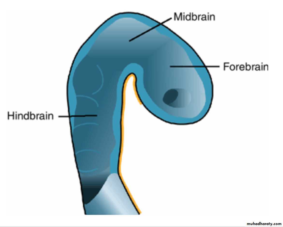 The cephalic end of the neural tube shows three dilations, the primary brain vesicles: