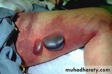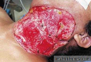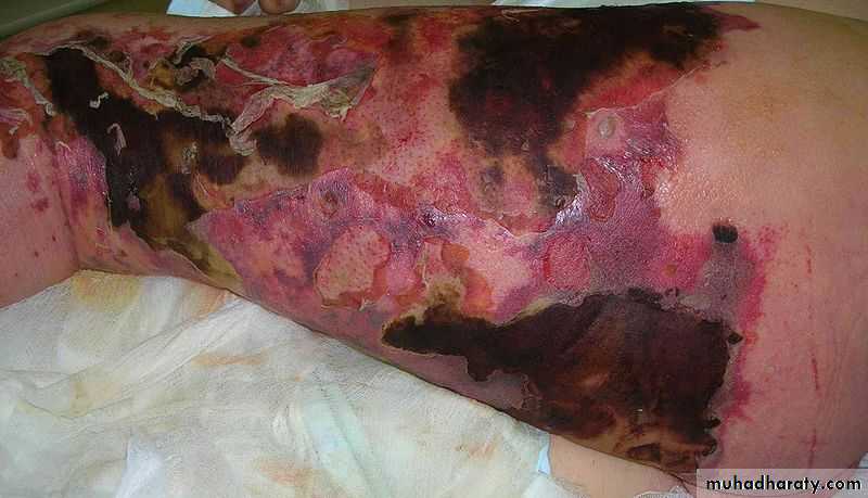 Necrotising Fasciitis= Caused by serious bacterial infection, sometimes referred to as flesh-eating bacteria