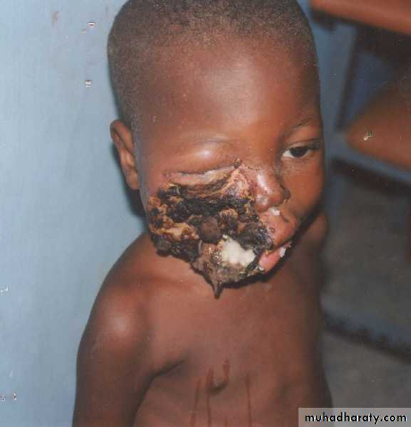 Is a gangrenous disease leading to tissue destruction of the face, especially the mouth and cheek.Risk factors include severe protein mal nutrition (Marasmis and Kwashioker) and unsanitary conditions.