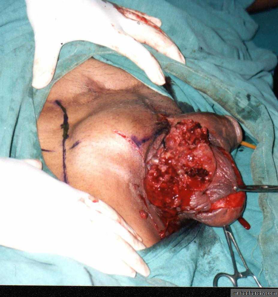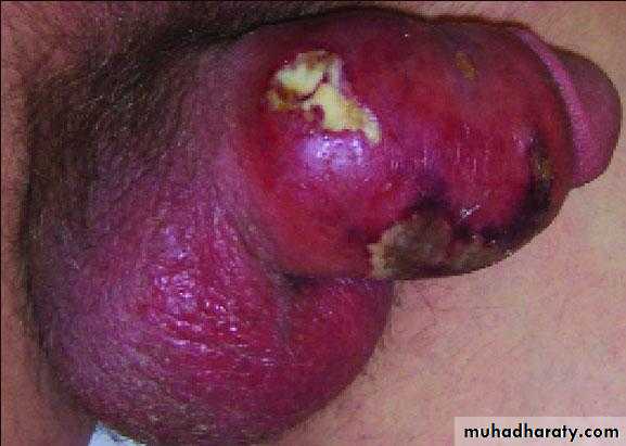 A type of necrotizing infection usually affecting the soft tissues of the male genitals.In the majority of cases it is a mixed infection caused by both aerobic and anaerobic bacteria
