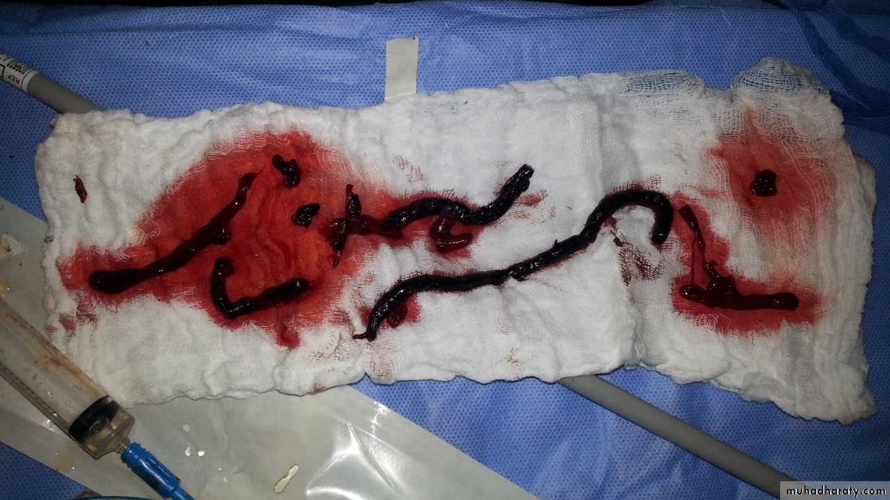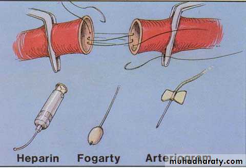 Fogarty balloon embolectomy catheters used to retrieve thrombus