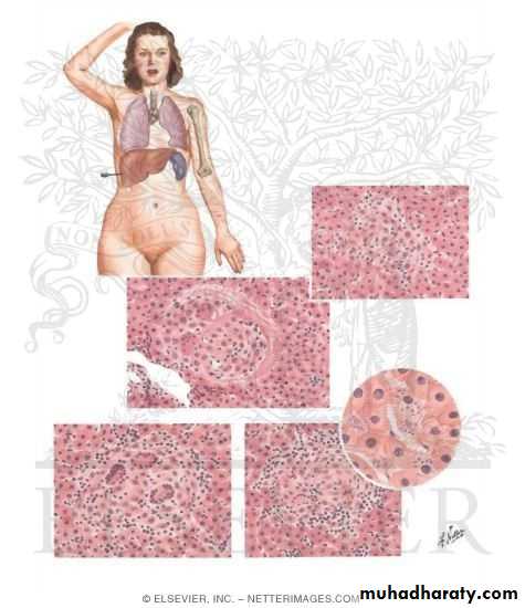 Pathology• Inflammatory responses by non caseating granuloma, caseation & abscesses