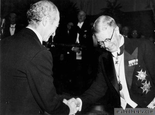 Linus Pauling and King Gustav VI, Nobel Prize ceremonies, Stockholm, Sweden. 1954.